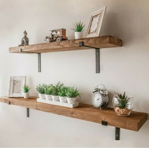 Rustic floating shelves wooden shelf chunky handmade bespoke wood with brackets. Rustic industrial l bracket wall hanger shelf rack bookshelf holder hardware for home office kitchen, rust oil free.